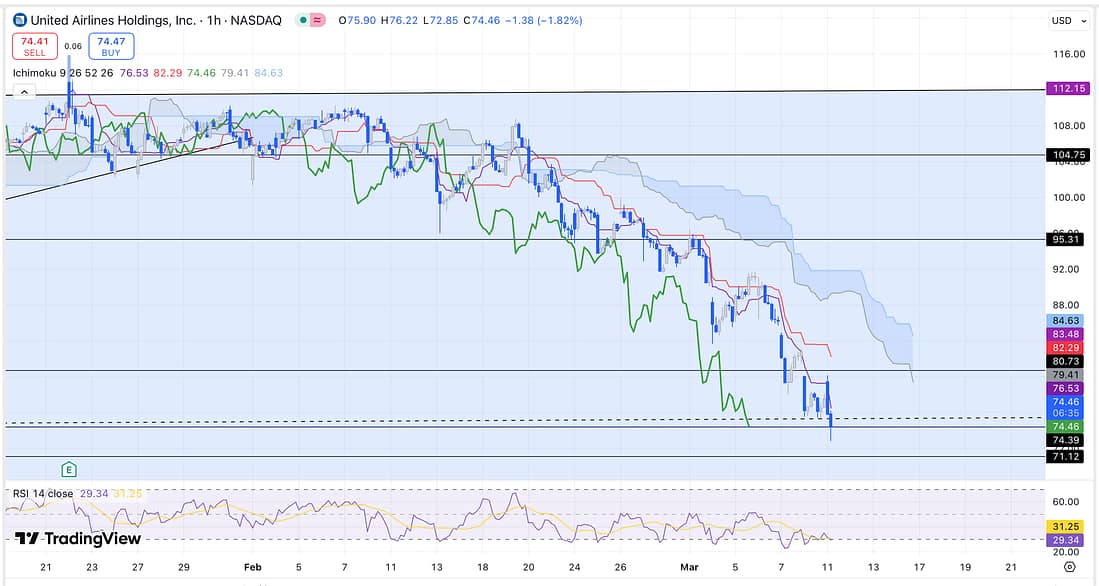 The price action of UAL has rapidly reached the centre of its parallel channel.