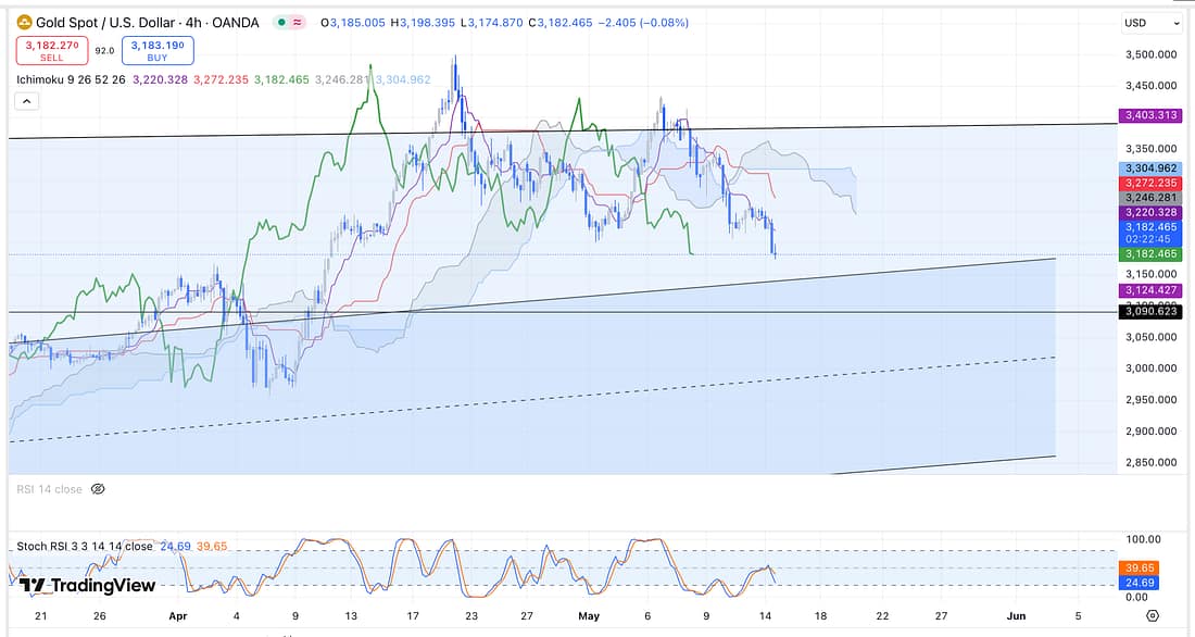 Closely monitor XAUUSD. If the price action of gold declines to the top of the parallel channel, then consider taking profits out of GFI trade immediately.