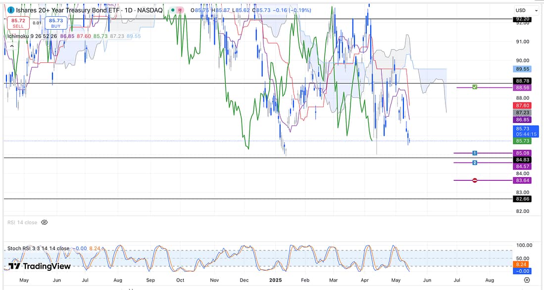 Use limit orders (x2) to start scaling into a TLT long dependent upon the price action continuing to decline to the upcoming major support level.