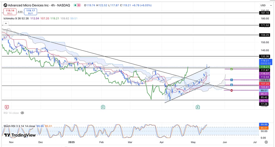 Take 50% profit out of AMD long trade, as soon as possible, becaue it has reached my take profit level area.