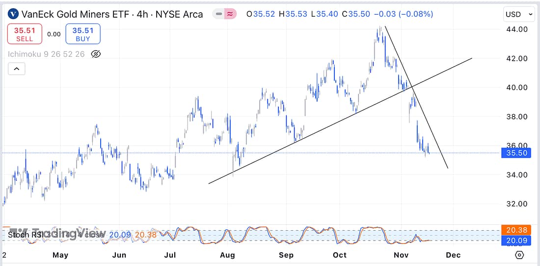 Watching Gareth Soloway’s trading video yesterday drew my attention to the possibility of trading Gold using GDX, which is a gold miners stock: