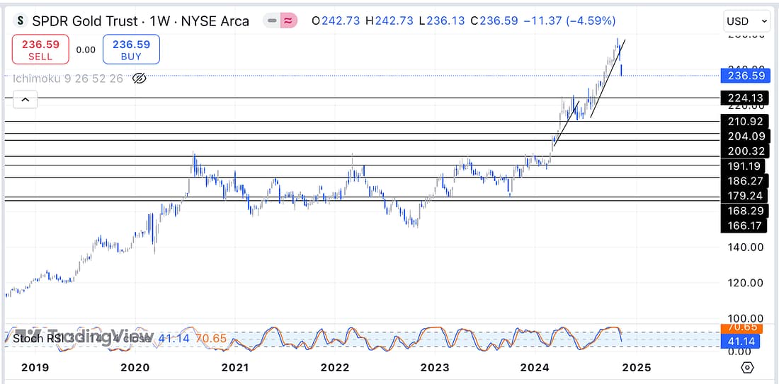 As can be seen above, Gold has been declining in accordance with its weekly timeframe Stochastic RSI.