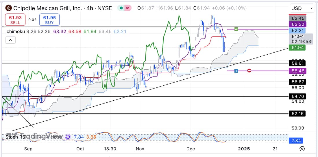 12. RUT – RUT has declined greatly so exit CMG as soon as possible as the broader market is declining.