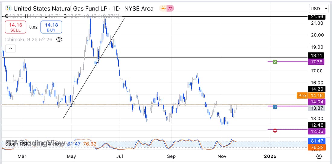 - Scale into a small long entry in relation to UNG tomorrow when the markets re-open.