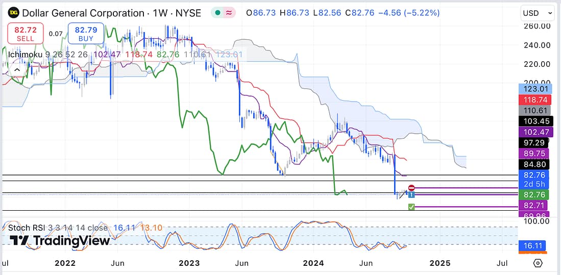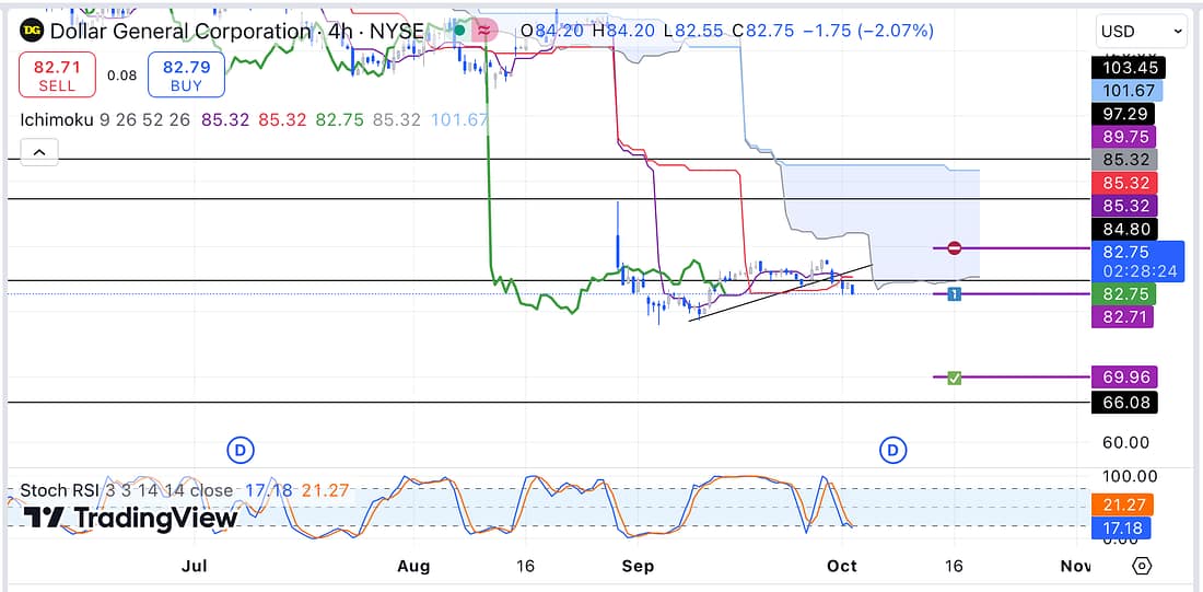 That said, I have decided to enter into a short trade (which is a low-probability trade because it is not in alignment with RUT, the broader market) concerning Dollar General: