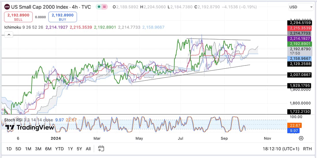 As can be see above, the price action of RUT on the Ichimoku shows that probabilities favour the price action continuing to decline in the short-term. So let’s see how this plays out!