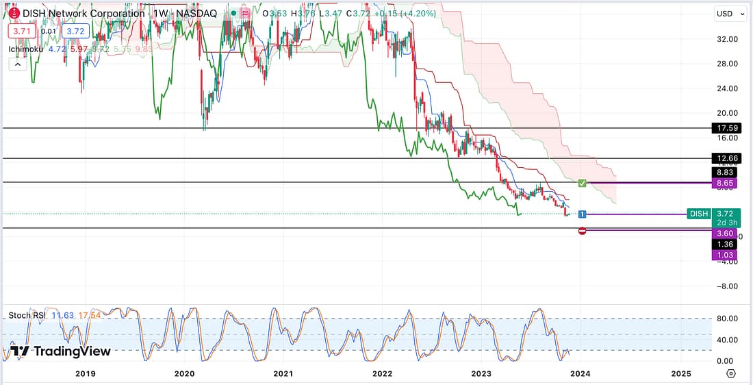 - Monitor DISH trade tomorrow to consider the relationship between the latest price action and the support and resistance levels on the daily and weekly timeframes.