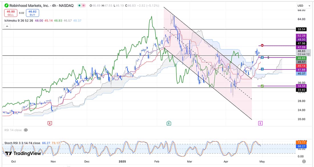 - Exit full HOOD short trade position immediately in light of its earning report being set for release after the market closes.