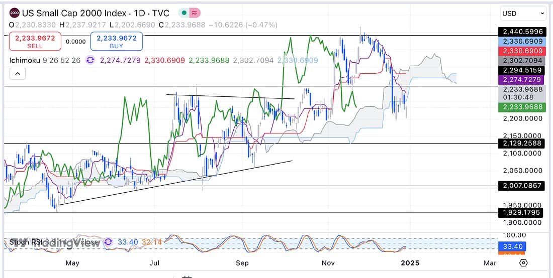 8. RUT – the price action of the RUT is declining on the daily timeframe so definitely hold on to the CMG short for now: