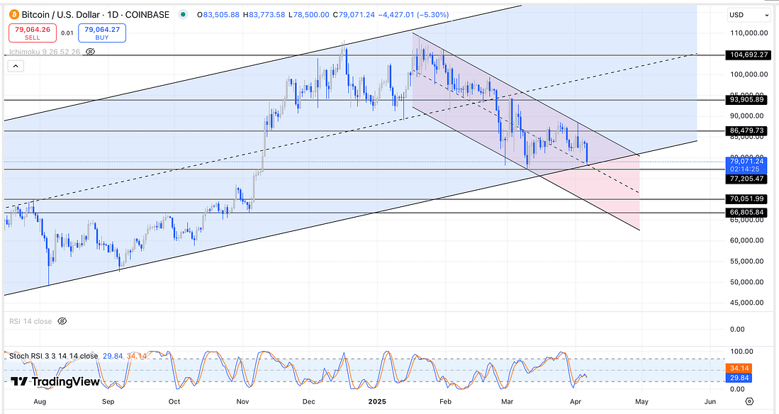 Today, I decided to re-draw the parallel channel for BTC as I noticed that I have a tendancy to put a bullish parallel channel on bearish price action (I did the same thing when analysing the US10Y).